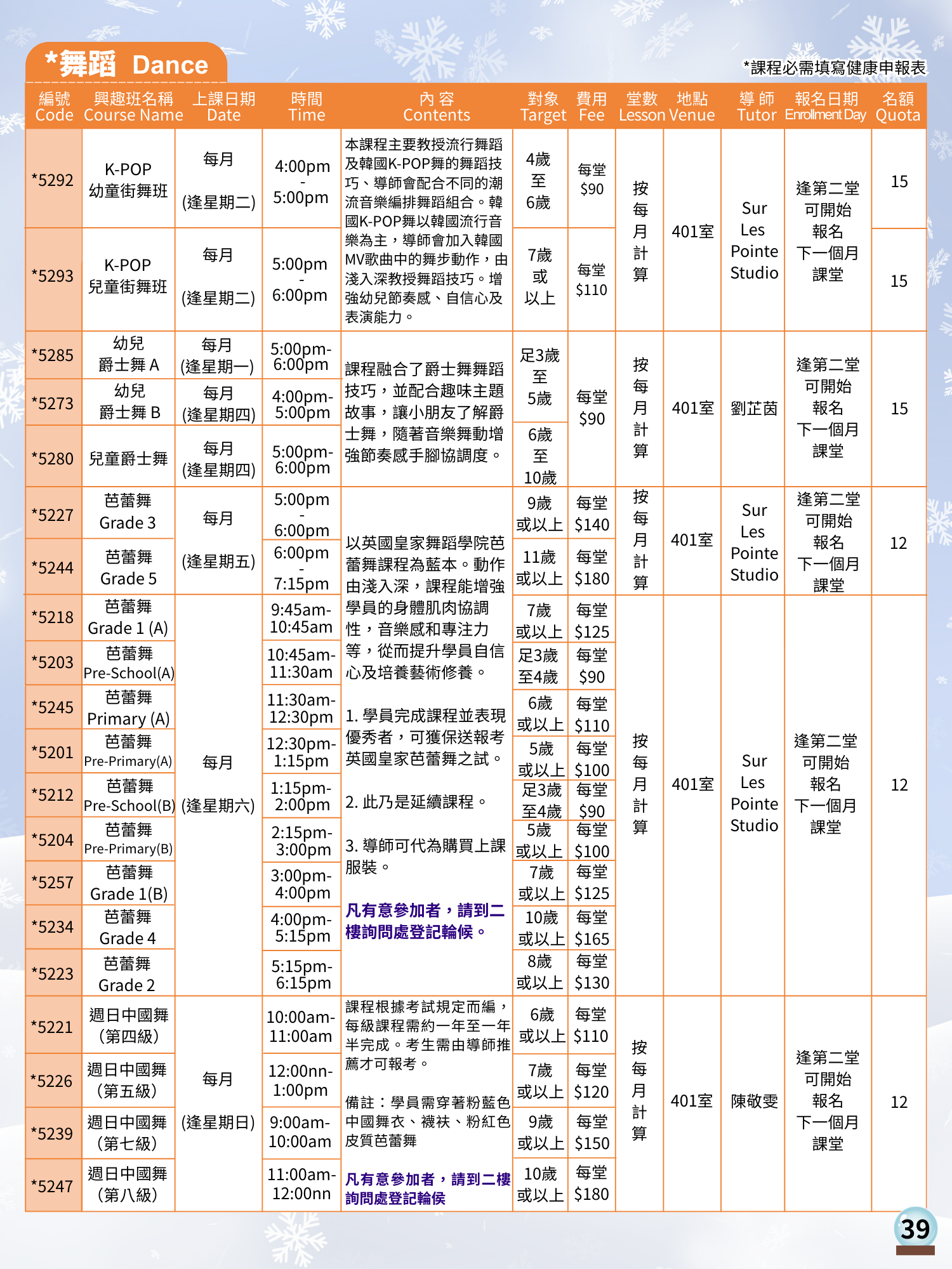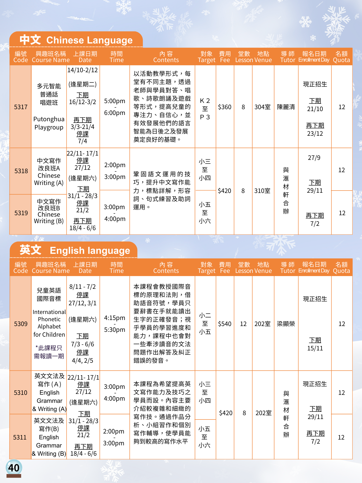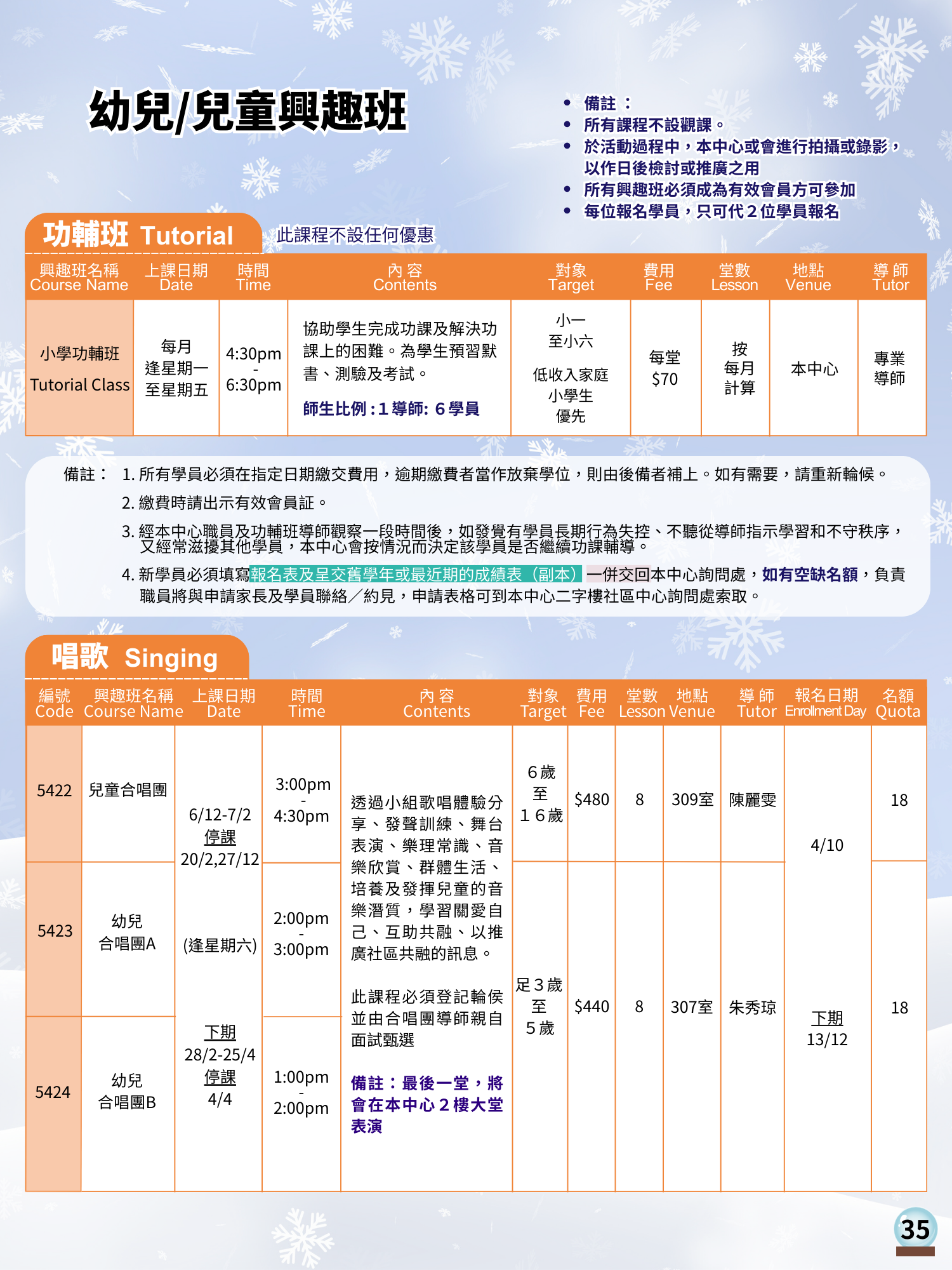 通訊內日期有機會因應天氣或其他原因有所更改,如需報名請先致電中心:27502727向職員查詢